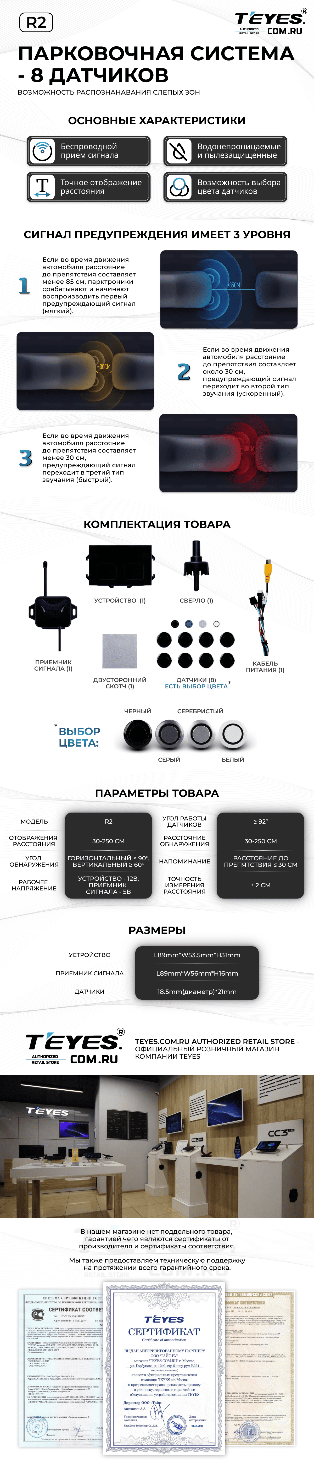 Передние и задние парктроники Teyes R2 для CC4 Pro / CC4 / CC4L / CC3 2K / CC3 / CC3L / CC2 Plus / SPRO Plus / TPRO2 / LUX ONE (Белые) 8-датчиков - купить всего за 19 900 руб. в интернет-магазине в Липецке Teyes.com.ru. ✓ Самый лучший выбор мультимедиа ✓ Лучшая замена штатному ГУ ✓ Тел. +7 (800) 775-31-74