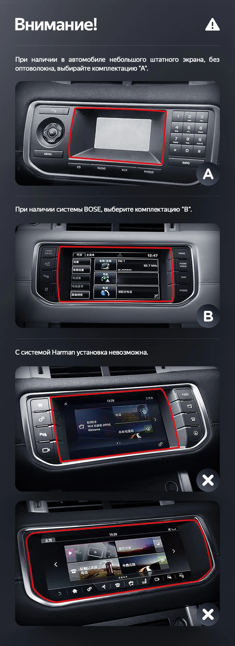 Готовый установочный комплект для магнитолы Land Rover Range Rover Evoque (2011-2018) Тип-A 12,3 дюймов в штатное место, включает переходную рамку и проводку.