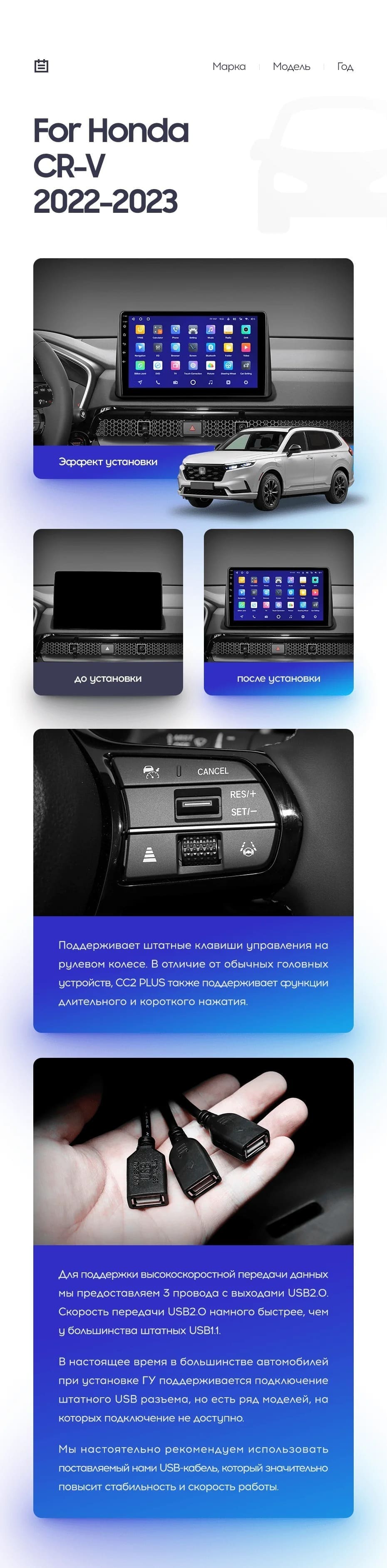 Модель Teyes CC2 Plus - это именно та штатная магнитола, которая полноценно заменит в вашем автомобиле все мультимедийные устройства. Большой и красочный дисплей, управление голосом, интернет и навигация, безупречная акустика и всё то, что так любят автомобилисты - комфорт и мощность во время езды.