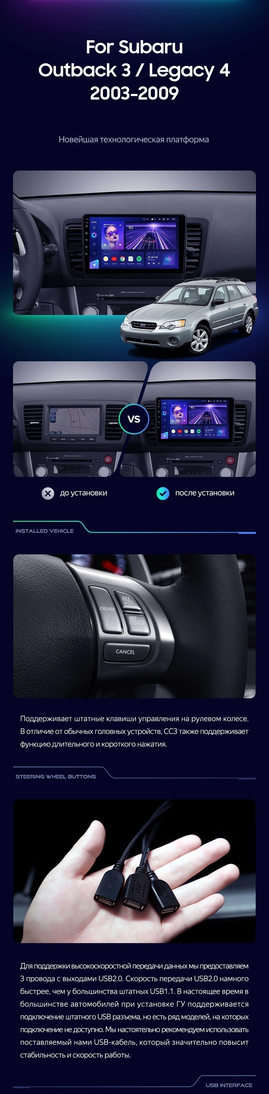 Штатная магнитола Teyes CC3 2K 4/32 Subaru Outback 3 (2003-2009) - купить всего за 39 250 руб. в интернет-магазине в Липецке Teyes.com.ru. ✓ Самый лучший выбор мультимедиа ✓ Лучшая замена штатному ГУ ✓ Тел. +7 (800) 775-31-74