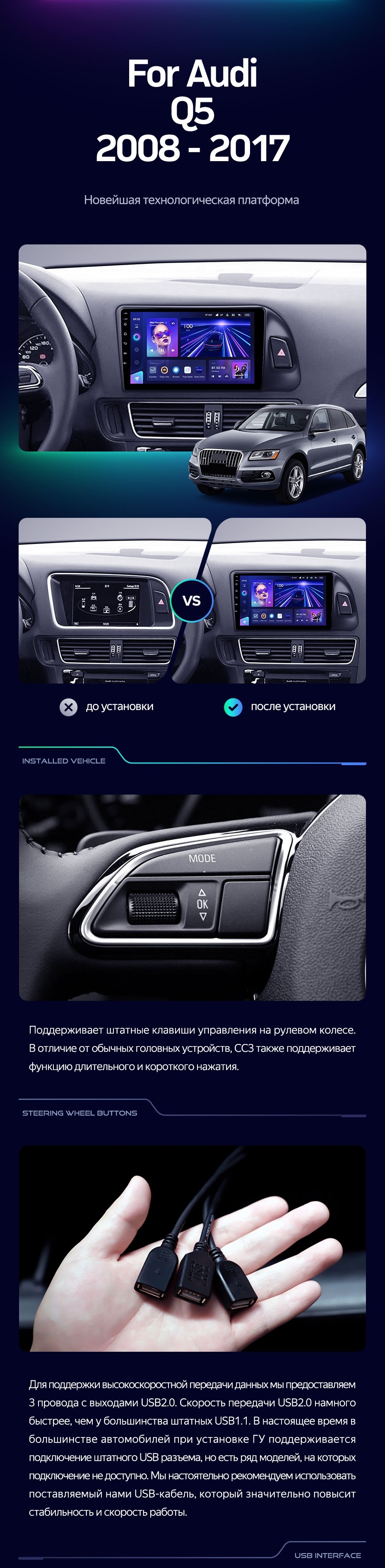 Штатная магнитола Teyes CC3 4/32 Audi Q5 8R (2008-2017) Тип-B - купить всего за 37 300 руб. в интернет-магазине в Липецке Teyes.com.ru. ✓ Самый лучший выбор мультимедиа ✓ Лучшая замена штатному ГУ ✓ Тел. +7 (800) 775-31-74