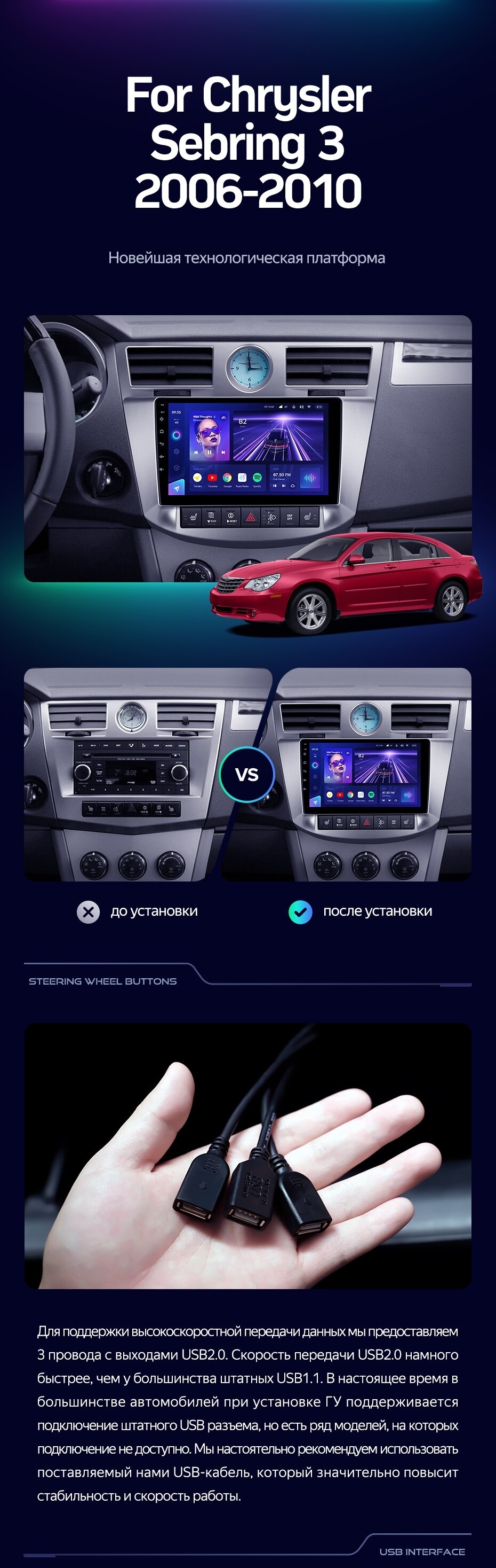 Штатная магнитола Teyes CC3 4/32 Chrysler Sebring 3 JS (2006-2010) - купить всего за 35 430 руб. в интернет-магазине в Липецке Teyes.com.ru. ✓ Самый лучший выбор мультимедиа ✓ Лучшая замена штатному ГУ ✓ Тел. +7 (800) 775-31-74