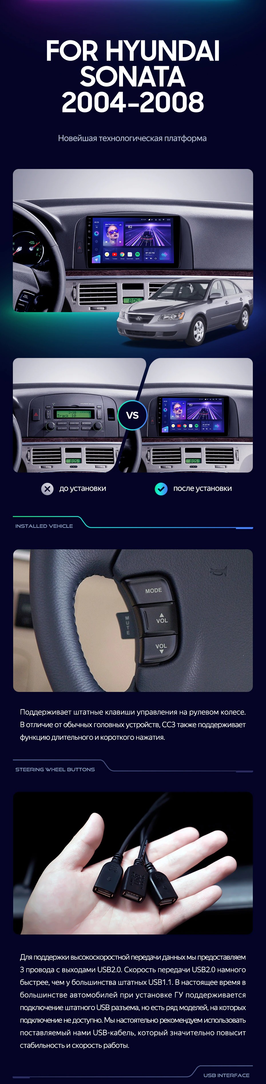Штатная магнитола Teyes CC3 4/32 Hyundai Sonata NF (2004-2008) - купить всего за 32 230 руб. в интернет-магазине в Липецке Teyes.com.ru. ✓ Самый лучший выбор мультимедиа ✓ Лучшая замена штатному ГУ ✓ Тел. +7 (800) 775-31-74