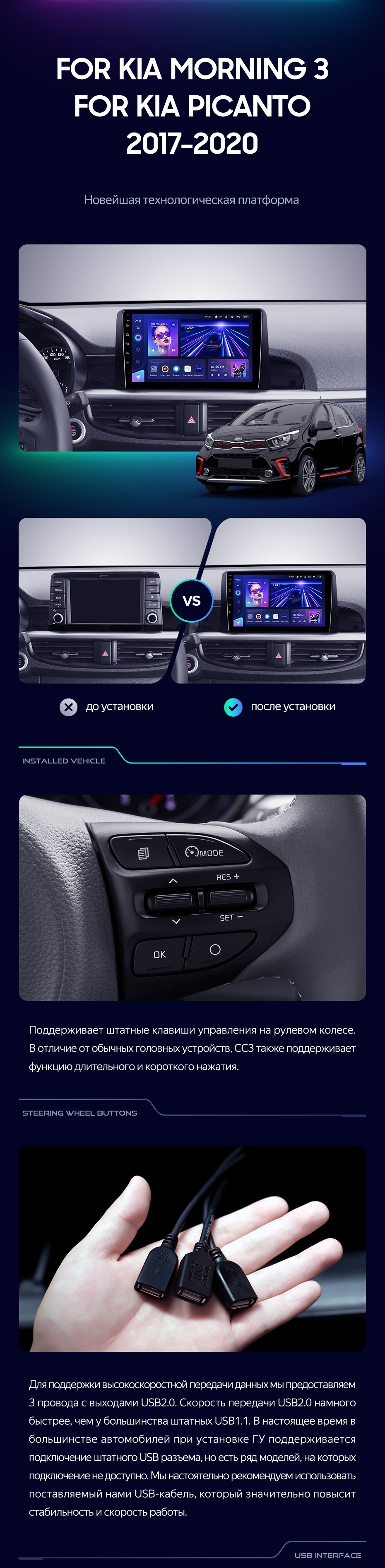 Штатная магнитола Teyes CC3 4/32 Kia Picanto (2017-2020) Тип-A - купить всего за 32 730 руб. в интернет-магазине в Липецке Teyes.com.ru. ✓ Самый лучший выбор мультимедиа ✓ Лучшая замена штатному ГУ ✓ Тел. +7 (800) 775-31-74