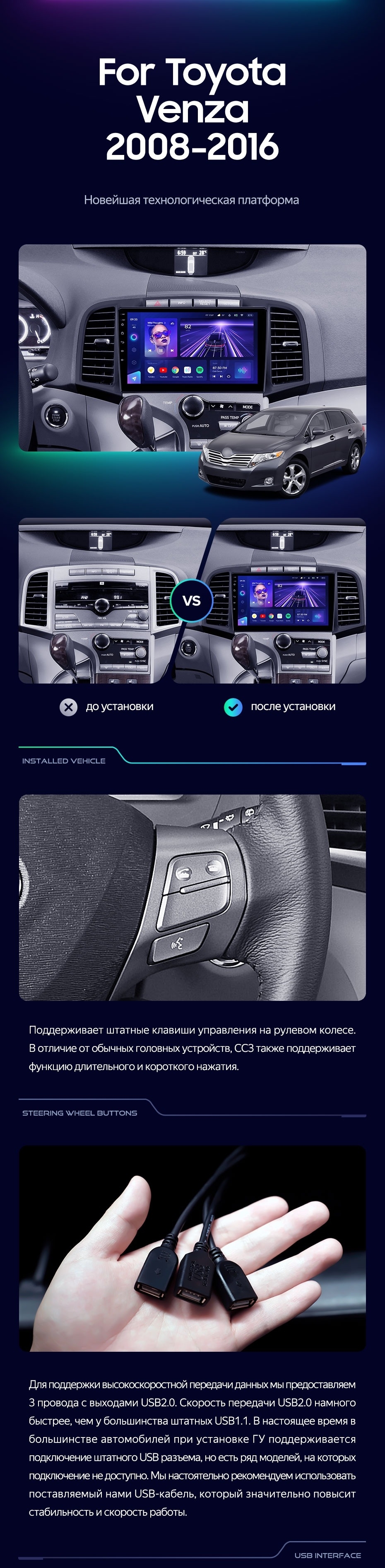 Штатная магнитола Teyes CC3 4/32 Toyota Venza (2008-2016) - купить всего за 32 580 руб. в интернет-магазине в Липецке Teyes.com.ru. ✓ Самый лучший выбор мультимедиа ✓ Лучшая замена штатному ГУ ✓ Тел. +7 (800) 775-31-74