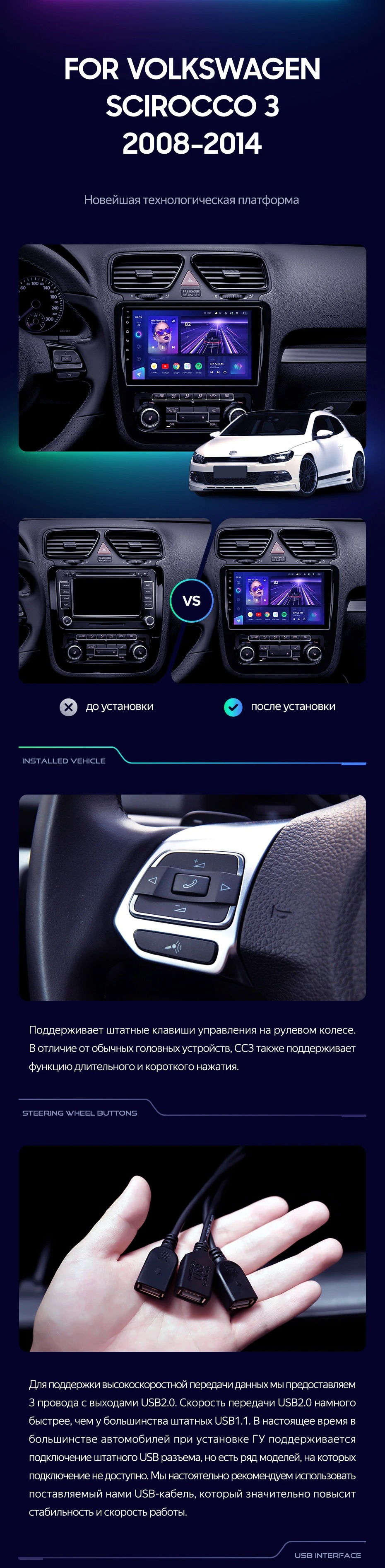 Штатная магнитола Teyes CC3 4/32 Volkswagen Scirocco (2008-2014) F2 - купить всего за 35 130 руб. в интернет-магазине в Липецке Teyes.com.ru. ✓ Самый лучший выбор мультимедиа ✓ Лучшая замена штатному ГУ ✓ Тел. +7 (800) 775-31-74