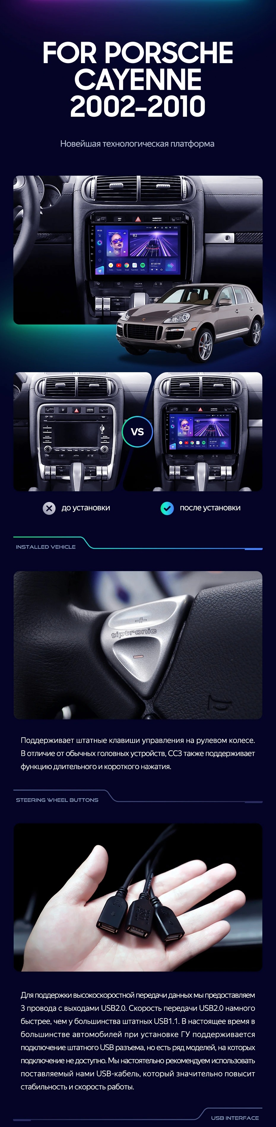 Штатная магнитола Teyes CC3 6/128 Porsche Cayenne I 1 9PA (2002-2010) - купить всего за 44 900 руб. в интернет-магазине в Липецке Teyes.com.ru. ✓ Самый лучший выбор мультимедиа ✓ Лучшая замена штатному ГУ ✓ Тел. +7 (800) 775-31-74