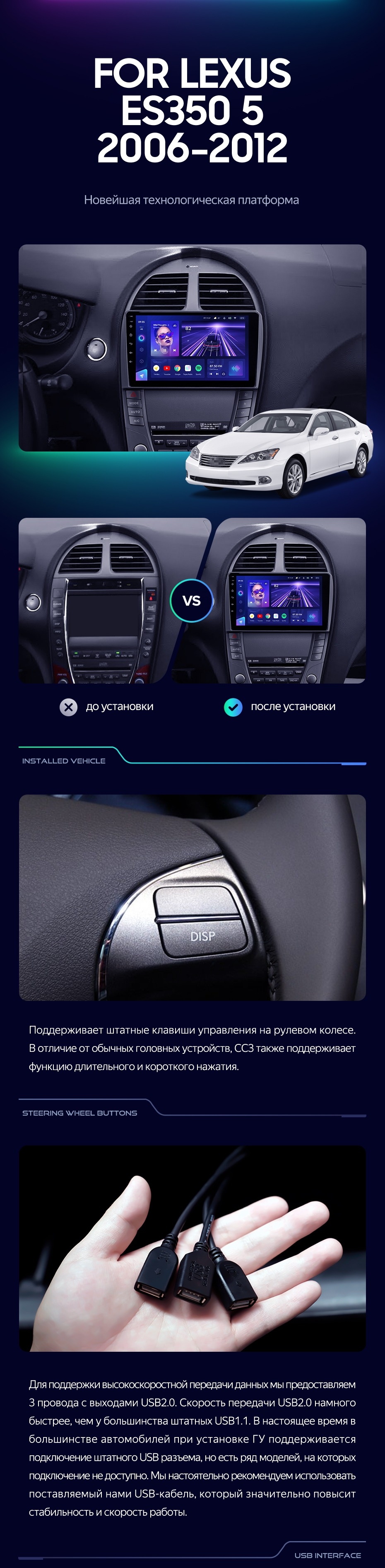 Штатная магнитола Teyes CC3L 4/32 Lexus ES350 5 V XV40 (2006-2012) Тип-C - купить всего за 31 700 руб. в интернет-магазине в Липецке Teyes.com.ru. ✓ Самый лучший выбор мультимедиа ✓ Лучшая замена штатному ГУ ✓ Тел. +7 (800) 775-31-74