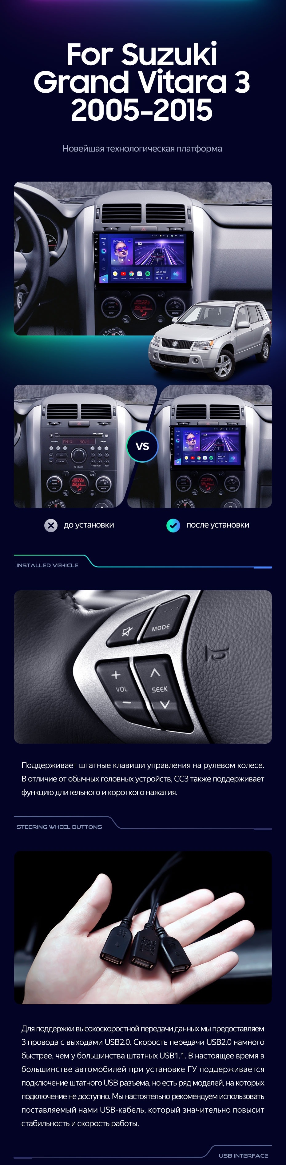Штатная магнитола Teyes CC3L 4/32 Suzuki Grand Vitara 3 (2005-2015) - купить всего за 27 900 руб. в интернет-магазине в Липецке Teyes.com.ru. ✓ Самый лучший выбор мультимедиа ✓ Лучшая замена штатному ГУ ✓ Тел. +7 (800) 775-31-74