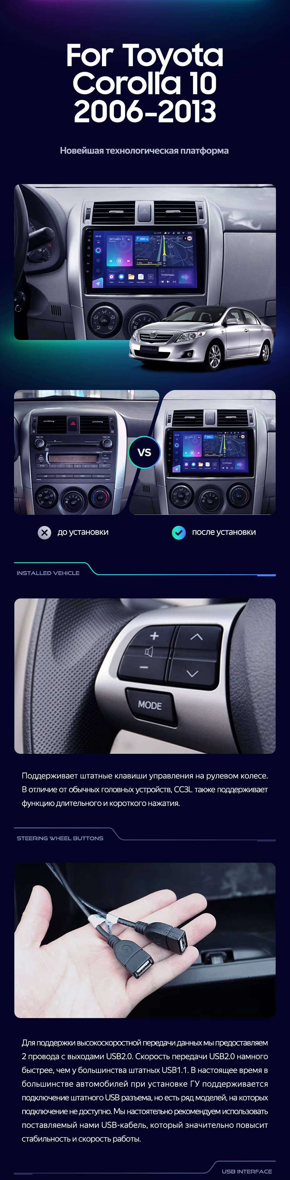Штатная магнитола Teyes CC3L 4/64 Toyota Corolla 10 E140 E150 (2006-2013) Тип-B - купить всего за 30 020 руб. в интернет-магазине в Липецке Teyes.com.ru. ✓ Самый лучший выбор мультимедиа ✓ Лучшая замена штатному ГУ ✓ Тел. +7 (800) 775-31-74