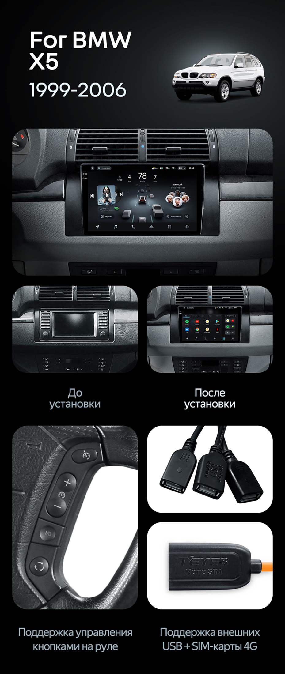Штатная магнитола Teyes CC4 Pro 12/256 BMW X5 E39 E53 (1999-2006) - купить всего за 69 900 руб. в интернет-магазине в Липецке Teyes.com.ru. ✓ Самый лучший выбор мультимедиа ✓ Лучшая замена штатному ГУ ✓ Тел. +7 (800) 775-31-74