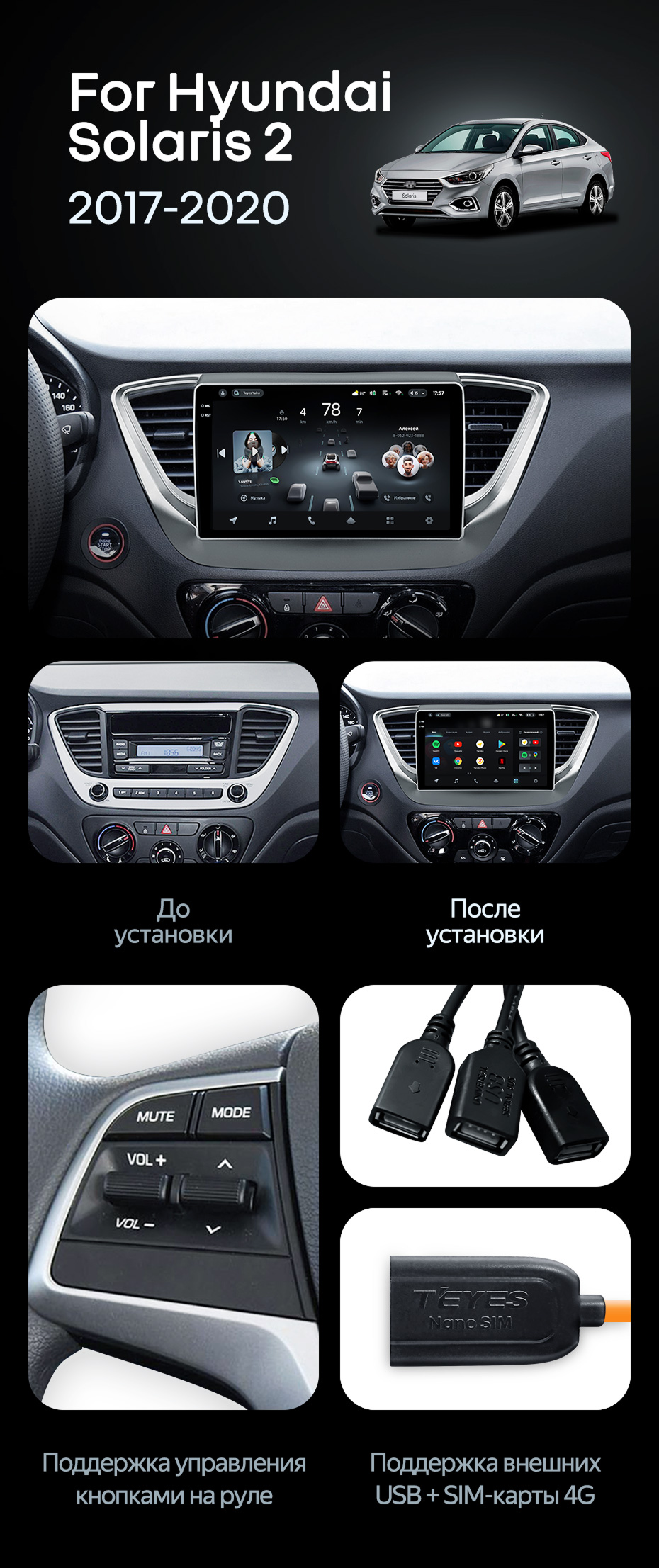 Штатная магнитола Teyes CC4 Pro 12/256 Hyundai Solaris 2 (2017-2020) F1 Тип-B - купить всего за 70 400 руб. в интернет-магазине в Липецке Teyes.com.ru. ✓ Самый лучший выбор мультимедиа ✓ Лучшая замена штатному ГУ ✓ Тел. +7 (800) 775-31-74