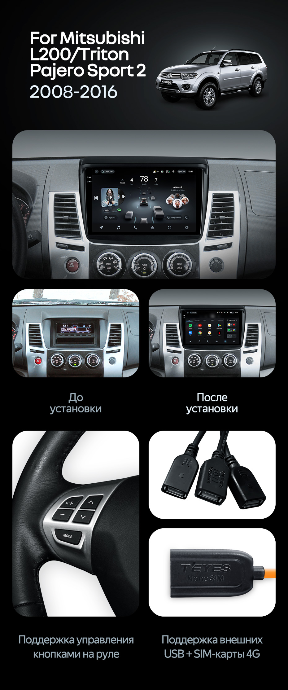 Штатная магнитола Teyes CC4 Pro 12/256 Mitsubishi L200 (2008-2016) - купить всего за 69 350 руб. в интернет-магазине в Липецке Teyes.com.ru. ✓ Самый лучший выбор мультимедиа ✓ Лучшая замена штатному ГУ ✓ Тел. +7 (800) 775-31-74