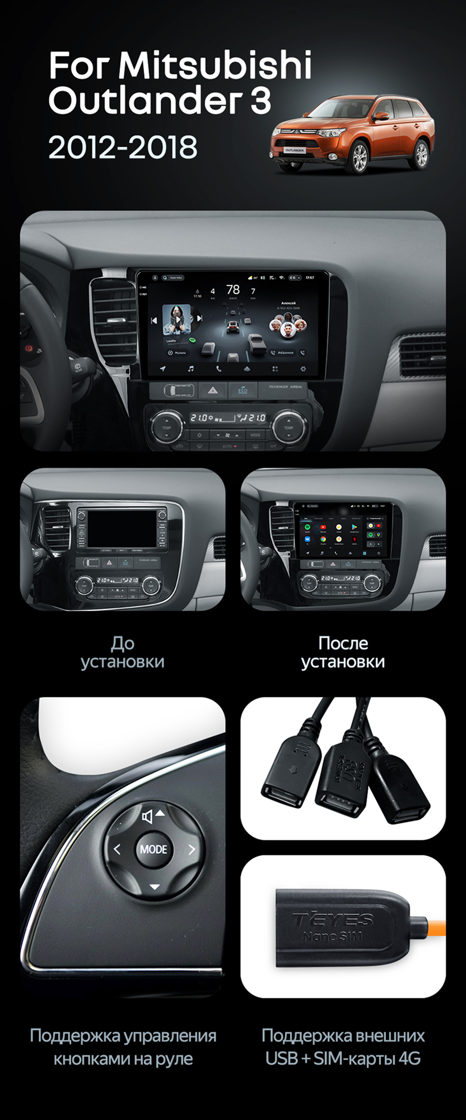 Штатная магнитола Teyes CC4 Pro 12/256 Mitsubishi Outlander 3 (2012-2018) Тип-A - купить всего за 68 900 руб. в интернет-магазине в Липецке Teyes.com.ru. ✓ Самый лучший выбор мультимедиа ✓ Лучшая замена штатному ГУ ✓ Тел. +7 (800) 775-31-74