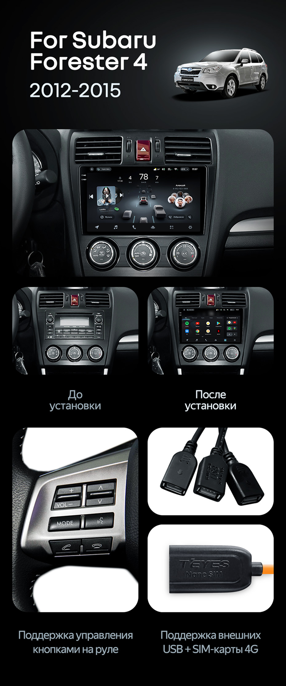 Штатная магнитола Teyes CC4 Pro 12/256 Subaru Forester 4 SJ (2012-2015) Тип-A - купить всего за 69 100 руб. в интернет-магазине в Липецке Teyes.com.ru. ✓ Самый лучший выбор мультимедиа ✓ Лучшая замена штатному ГУ ✓ Тел. +7 (800) 775-31-74