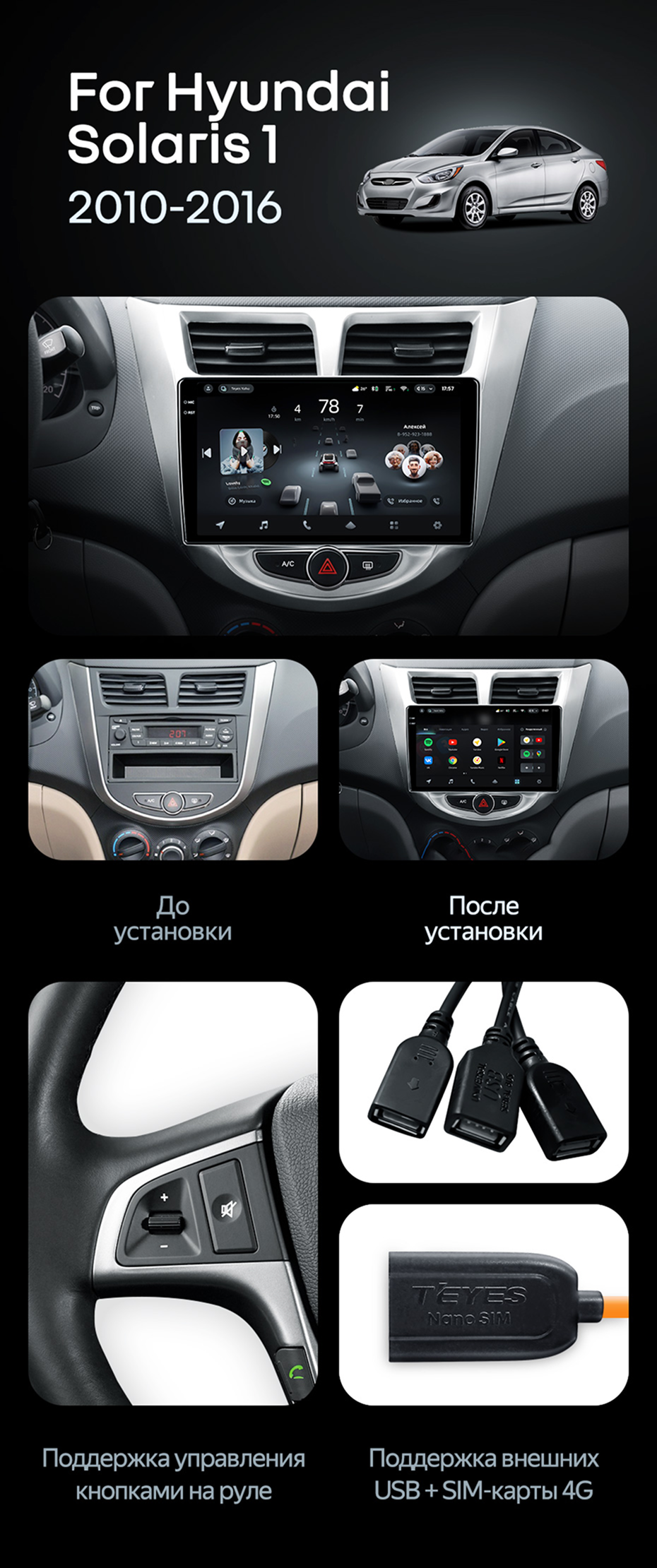 Штатная магнитола Teyes CC4 Pro 8/128 Hyundai Solaris 1 (2010-2016) F1 - купить всего за 57 850 руб. в интернет-магазине в Липецке Teyes.com.ru. ✓ Самый лучший выбор мультимедиа ✓ Лучшая замена штатному ГУ ✓ Тел. +7 (800) 775-31-74