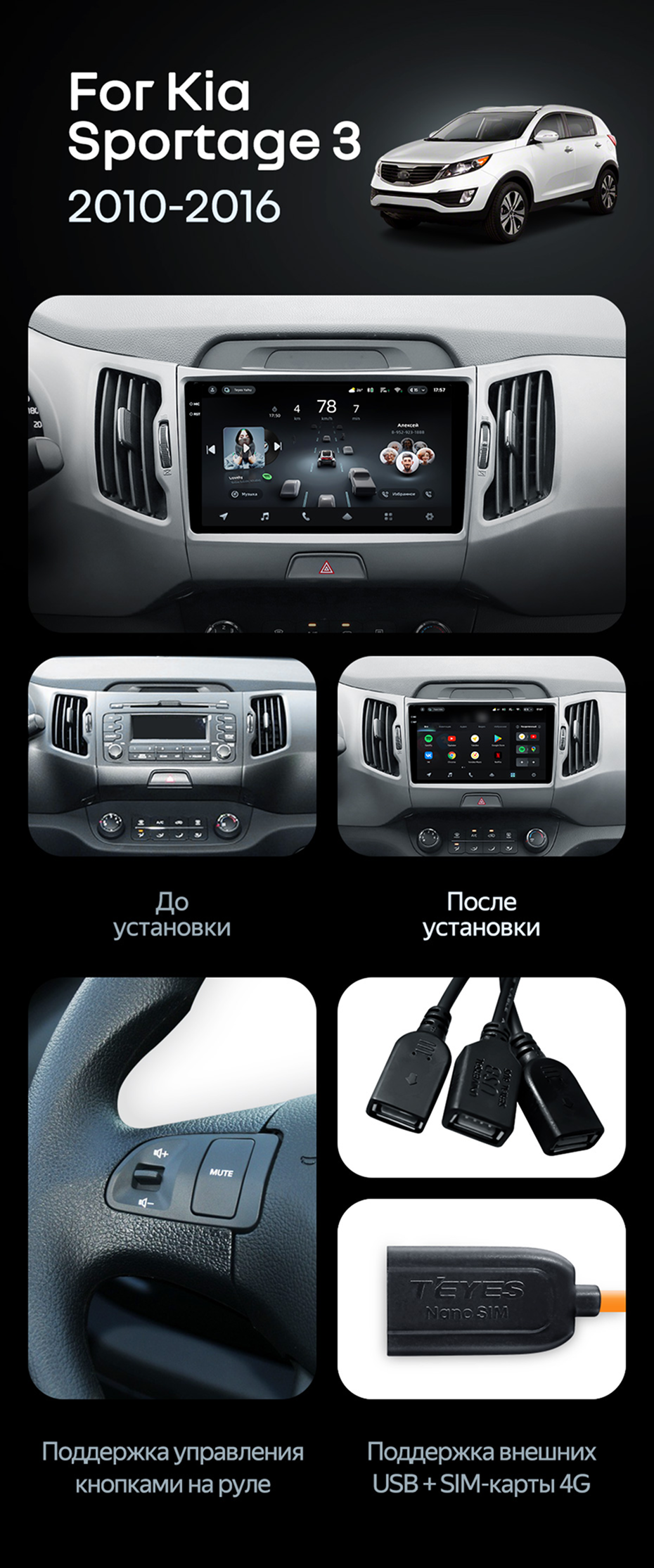 Штатная магнитола Teyes CC4 Pro 8/128 Kia Sportage 3 SL (2010-2016) Тип-A - купить всего за 58 070 руб. в интернет-магазине в Липецке Teyes.com.ru. ✓ Самый лучший выбор мультимедиа ✓ Лучшая замена штатному ГУ ✓ Тел. +7 (800) 775-31-74