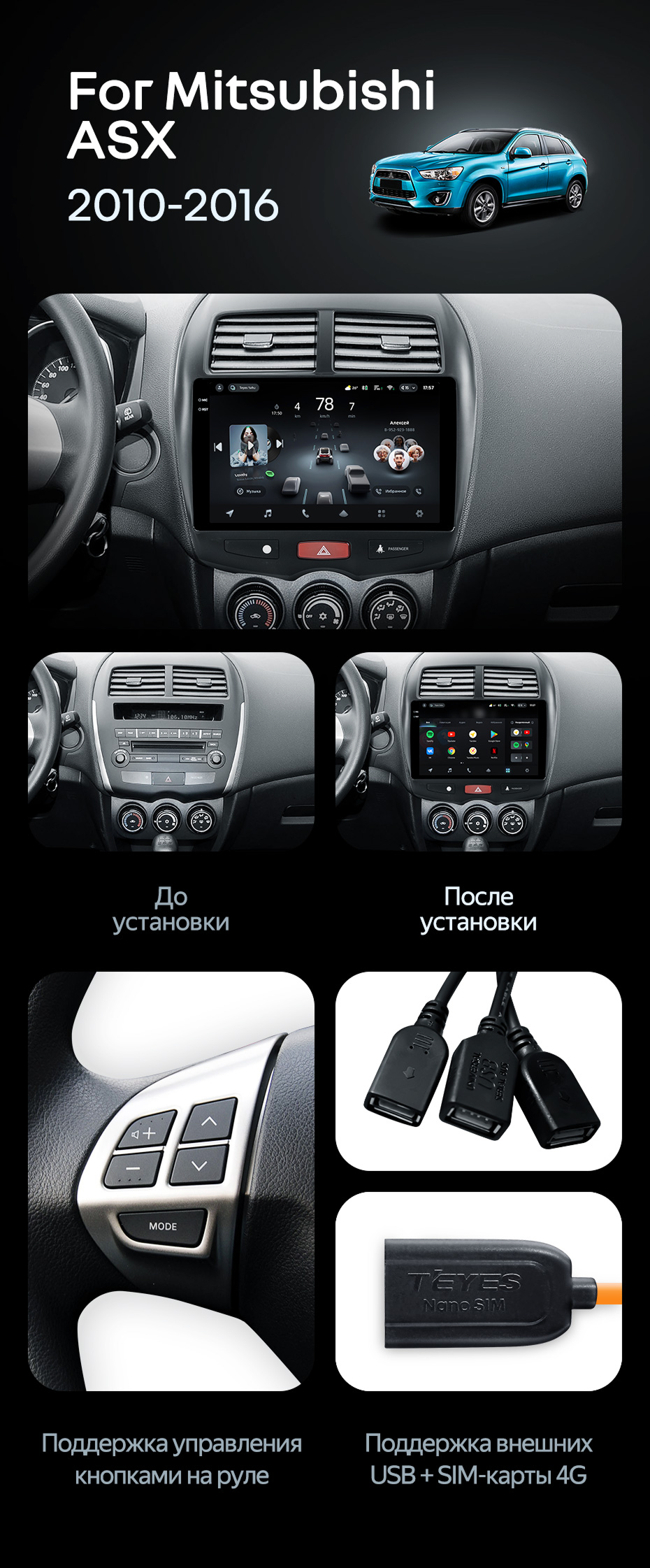 Штатная магнитола Teyes CC4 Pro 8/128 Mitsubishi ASX 1 (2010-2016) Тип-A - купить всего за 58 110 руб. в интернет-магазине в Липецке Teyes.com.ru. ✓ Самый лучший выбор мультимедиа ✓ Лучшая замена штатному ГУ ✓ Тел. +7 (800) 775-31-74