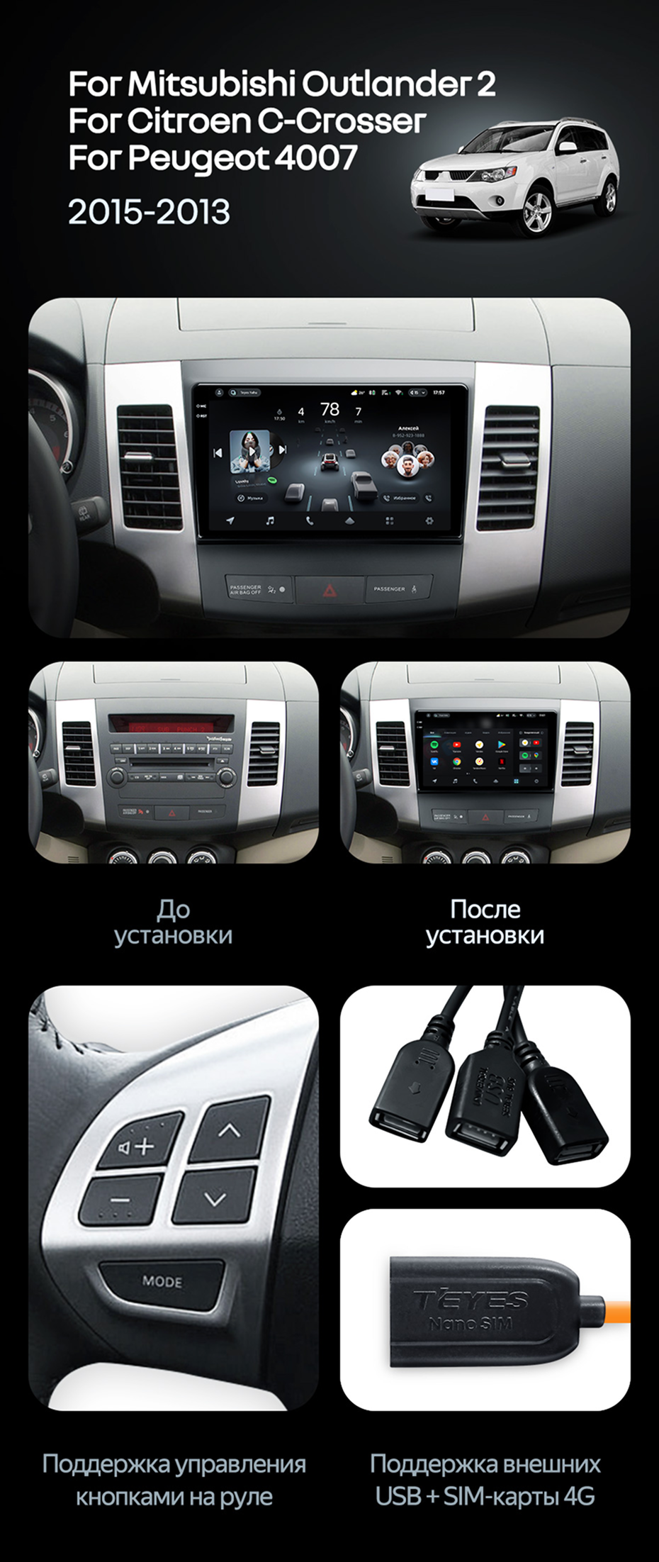 Штатная магнитола Teyes CC4 Pro 8/128 Peugeot 4007 (2007-2012) Тип-A - купить всего за 58 120 руб. в интернет-магазине в Липецке Teyes.com.ru. ✓ Самый лучший выбор мультимедиа ✓ Лучшая замена штатному ГУ ✓ Тел. +7 (800) 775-31-74