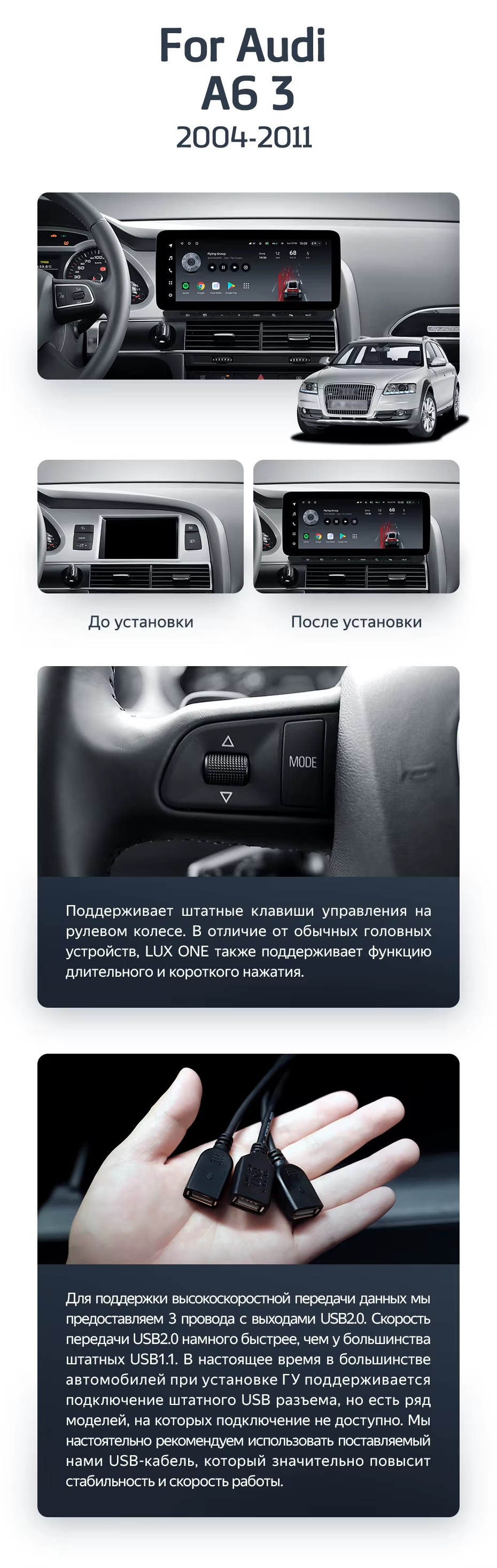 Штатная магнитола Teyes LUX ONE 4/64 Audi A6 3 C6 (2004-2011) - купить всего за 43 400 руб. в интернет-магазине в Липецке Teyes.com.ru. ✓ Самый лучший выбор мультимедиа ✓ Лучшая замена штатному ГУ ✓ Тел. +7 (800) 775-31-74