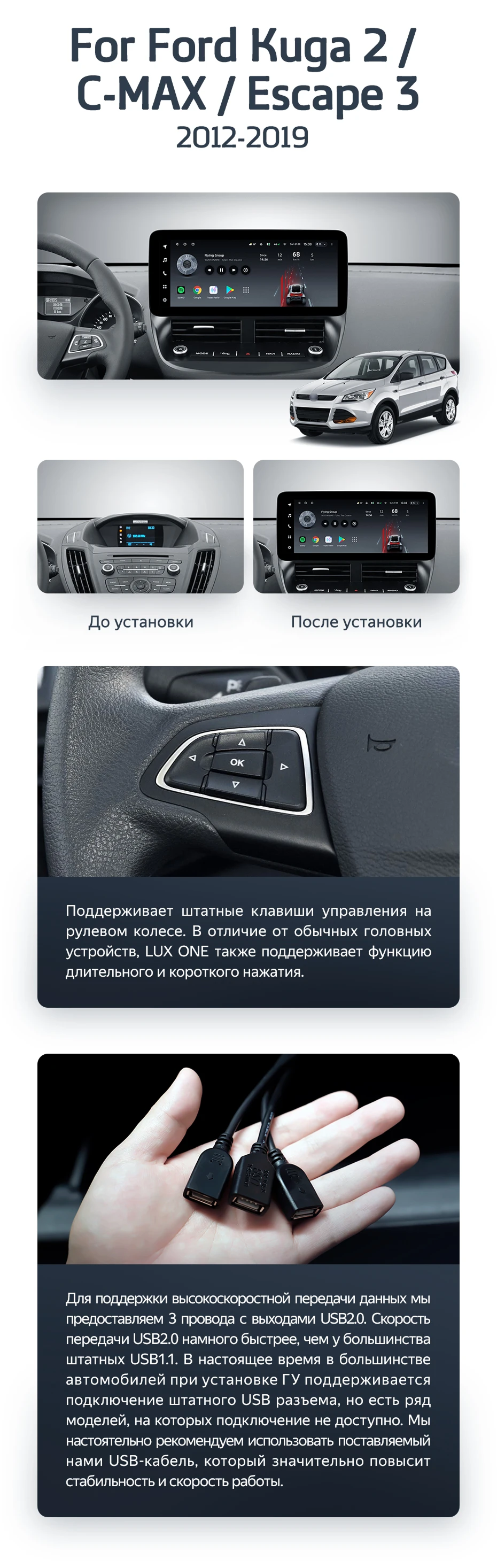 Штатная магнитола Teyes LUX ONE 4/64 Ford Escape 3 (2012-2019) - купить всего за 42 300 руб. в интернет-магазине в Липецке Teyes.com.ru. ✓ Самый лучший выбор мультимедиа ✓ Лучшая замена штатному ГУ ✓ Тел. +7 (800) 775-31-74