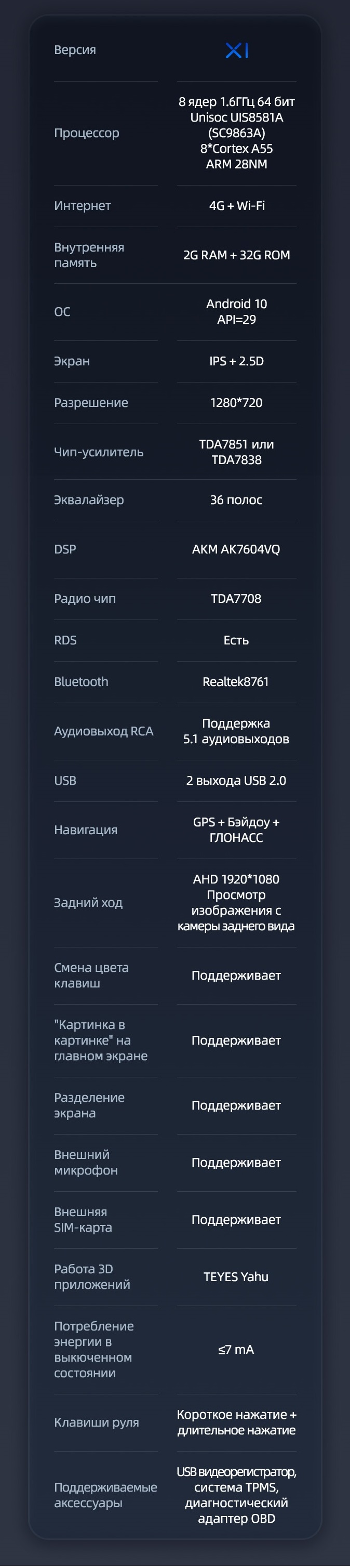 Голосовое управление. Имеется более 30 команд распознавания автономного голосового управления, два вида голоса устройства (женский и детский), а так же поддержка голосового управления телефонным набором. На данный момент на русскоязычном рынке только компания Teyes обладает указанными технологиями.