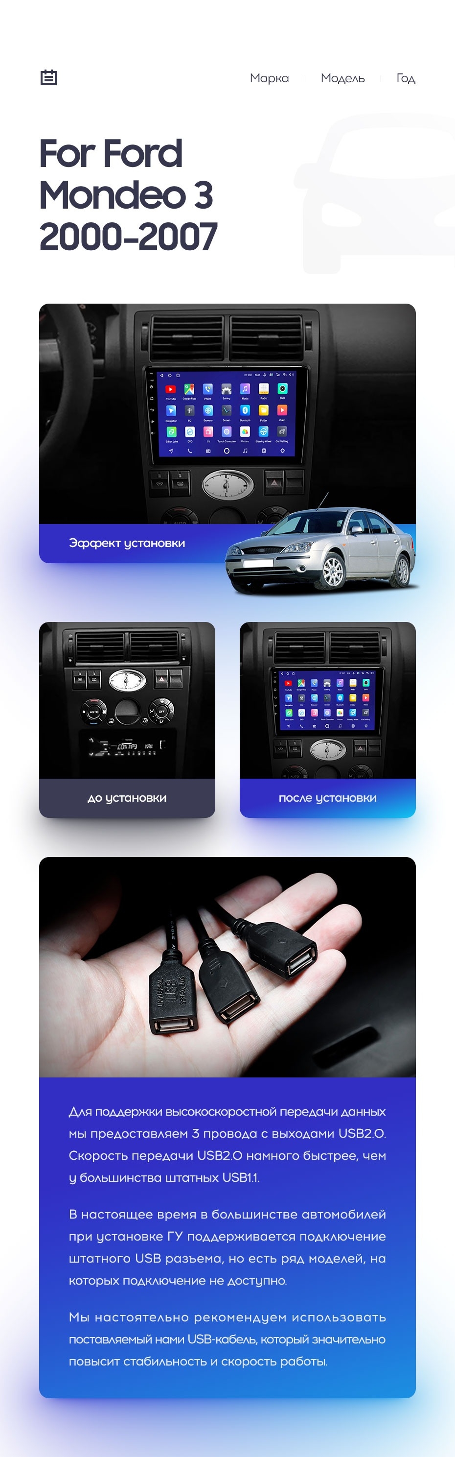 Полный комплект установки магнитолы Teyes с рамкой и проводкой можно выбрать в каталоге штатных магнитол Ford Mondeo 3 (2000-2007).