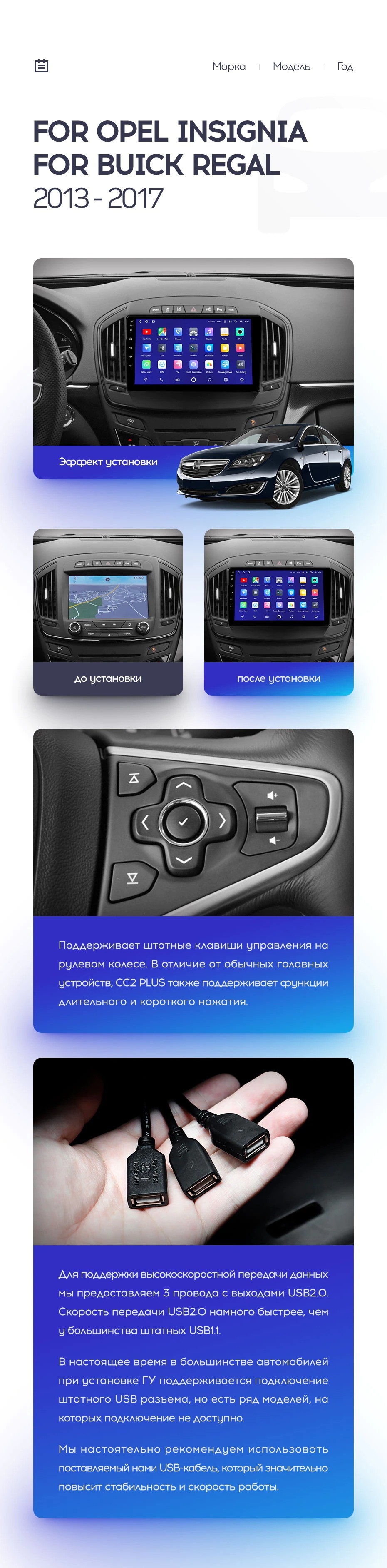 Полный комплект установки магнитолы Teyes с рамкой и проводкой можно выбрать в каталоге штатных магнитол Opel Insignia (2013-2017).